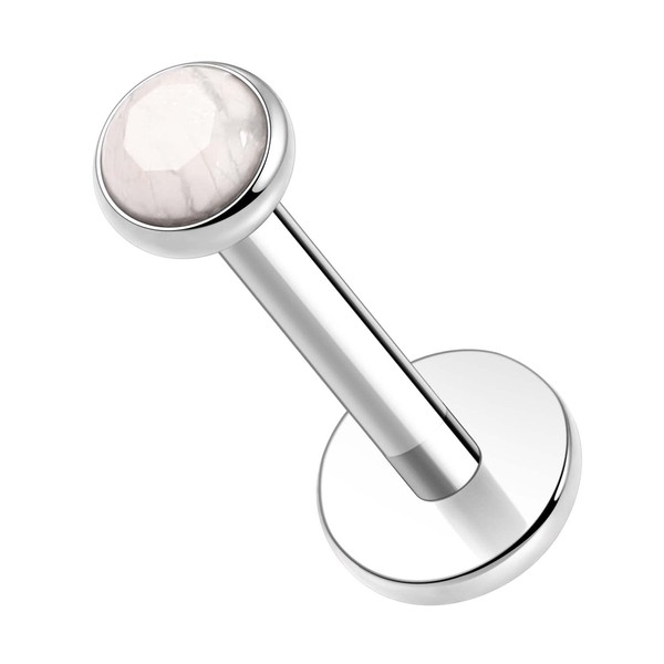 Titanium Labret Jewelry - Internally Threaded Flatback Earrings With White Turquoise 16G Lip Studs - Tragus, Monroe, Medusa, Helix, Lobe, Cartilage, Conch Piercing - Silver 6mm