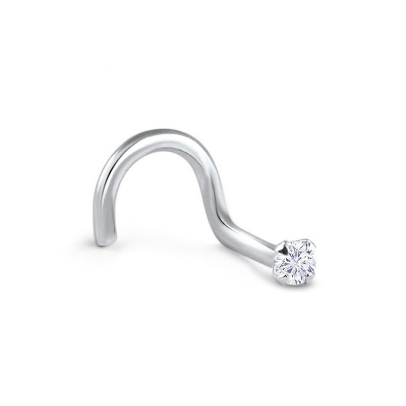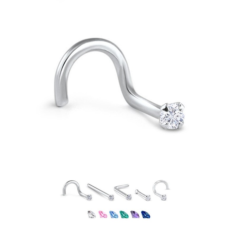 Titanium Lbend Nose Ring 3mm Round Stone Clear 20G