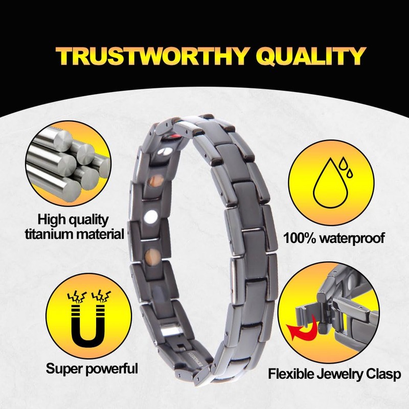 - 【Titanium Bracelet】This magnetic bracelet is made of pure titanium, which has the highest anti-allergic properties compared to other materials, which makes it safer to wear; firm texture, not easy to deform and fade; do not require frequent cleaning and maintenance, offer the best value for money and provide the best overall experience.