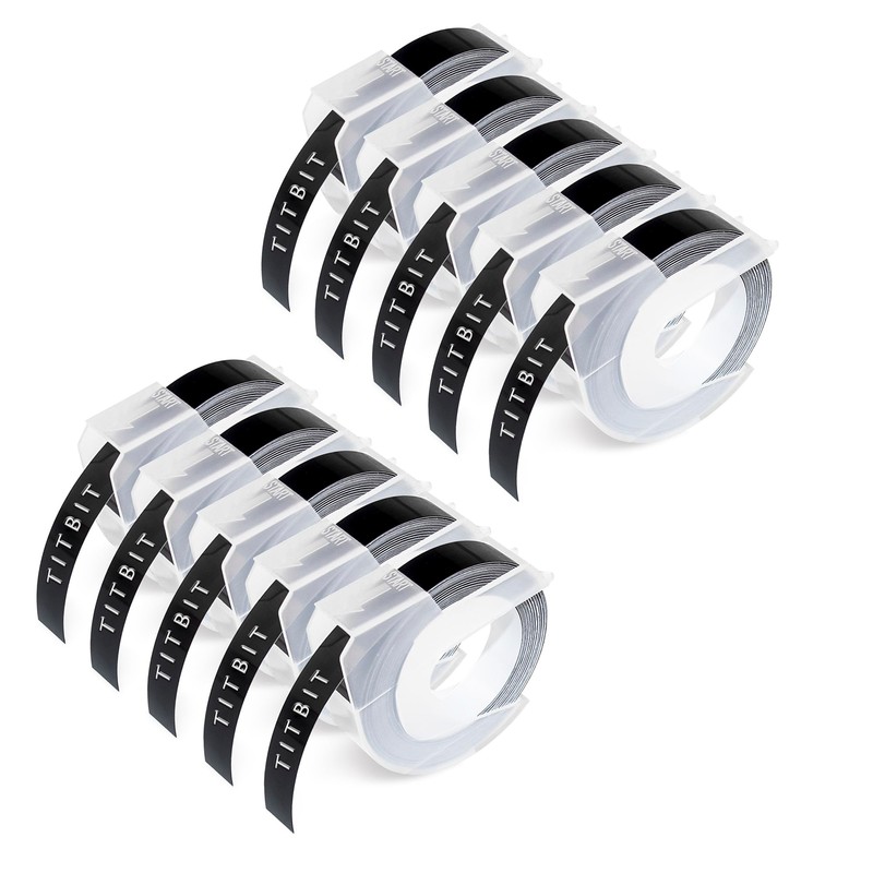 TITBIT 10-Pack 3D Emboss Tapes Compatible with DYMO Express Pro Handheld Embosser 3/8 Inch 9mm White on Black for DYMO Embossing Label Maker 1550 1610 Organizer Xpress Pro 12966 12965