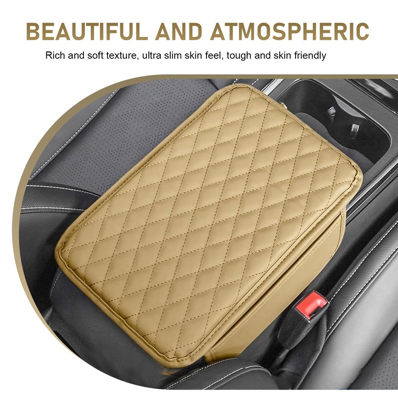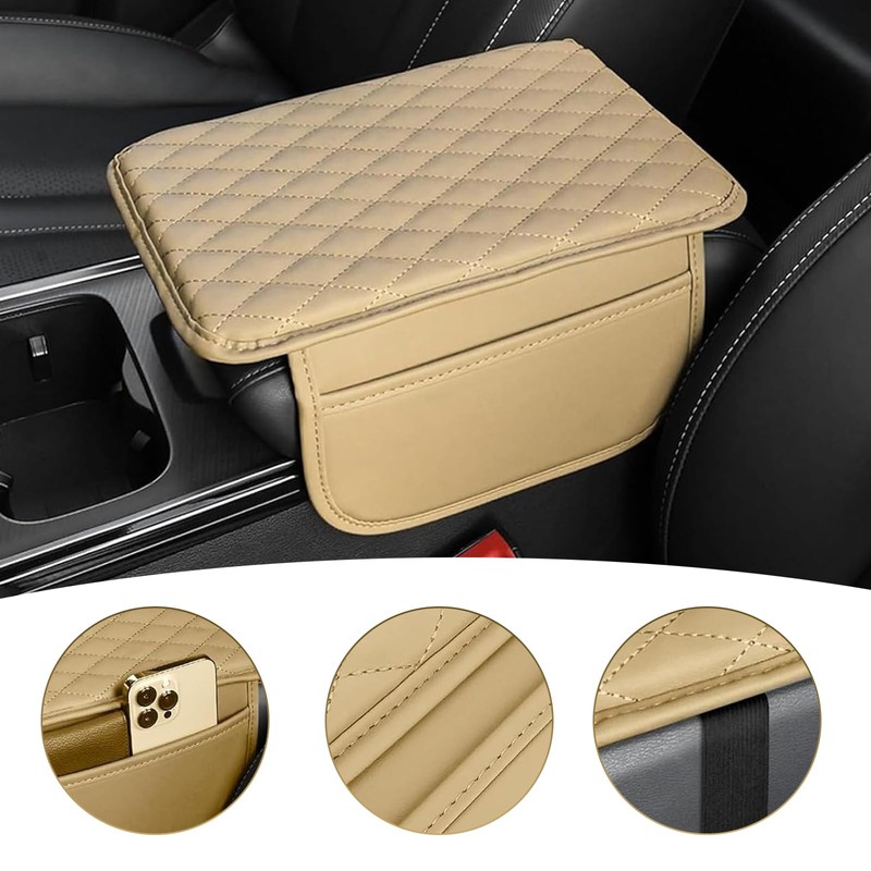 Titgoes Car Armrest Box Pad, Wear-resistant & Scratch-proof Leather Center Console Cover, Storage-enabled Console Pad, Universal for Sedans SUVs Trucks (Beige)