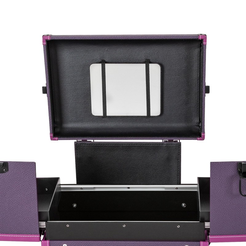 TITIDU Portable Rolling Makeups Train Case Trolley Cosmetic Storage Organizer Lockable,Rolling Cosmetic Organizer w/Lock & Mirror (Purple)