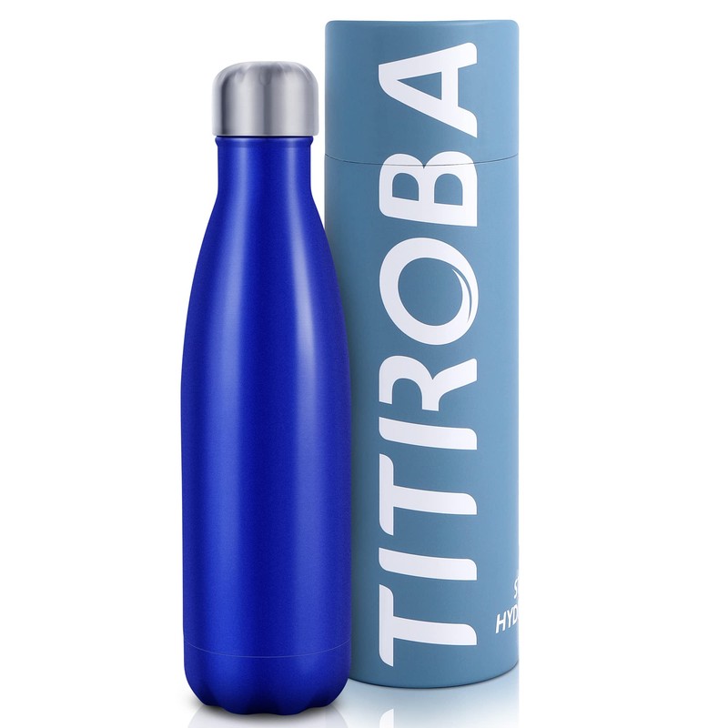 TITIROBA Stainless Steel Water Bottle, 500 ml, Vacuum Insulated, Leak-Proof Thermos Flask, Insulated Flask, BPA-Free, 24 Hours Cold and 12 Hours Hot Glossy Ocean Blue
