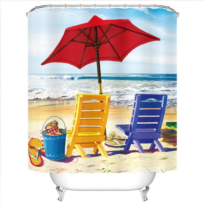 Tititex Summer Shower Curtain Sets - Sea Beach Recliner Bathroom Curtain, Waterproof Polyester Fabric Bath Decoration with 12 Hooks, 72 x 72 Inch