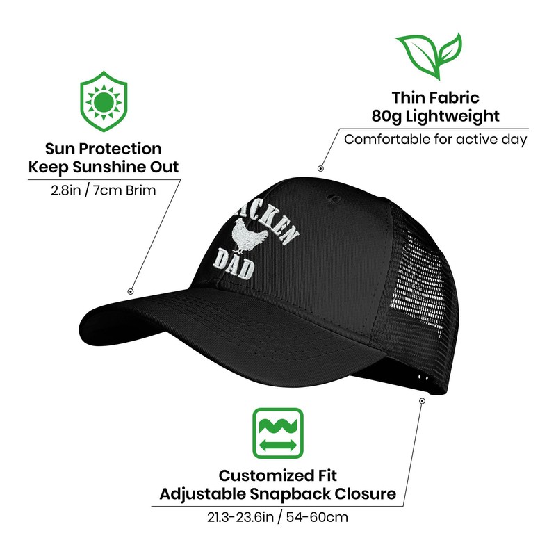 Titlesign Chicken Dad Baseball Caps Embroidered Adjustable Mesh Dad Hat Black Trucker Hats for Men and Women