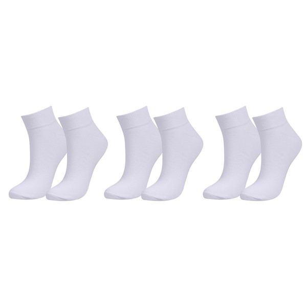 tittimitti 98% Organic Cotton Women's Ankle Socks (3-Pack). (US, Numeric, 8, 9.5, Regular, Regular, White)