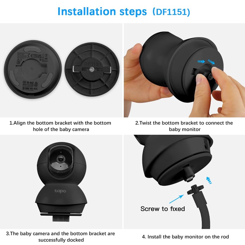 • you only need to bend and rotate the gooseneck of the bracket. It can wrap around any surface, such as a crib or a metal pole. Change the position of the TP-Link Camera according to your needs to get the best viewing effect. No drilling, no screws, and no wall damage.