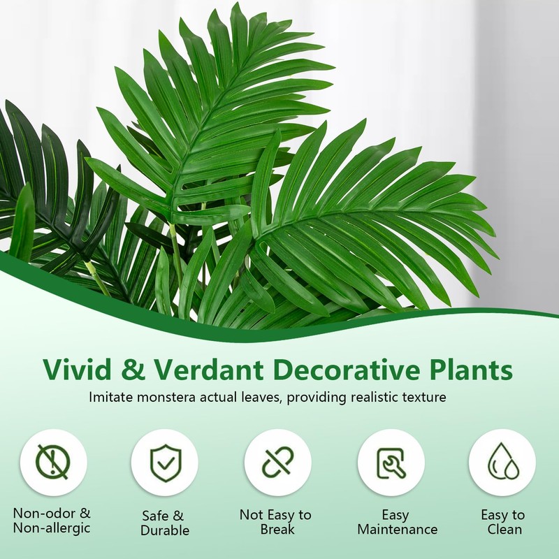 - 【Natural Appearance】 Faux plant is crafted from sturdy and premium polyester, featuring realistic leaves and branches. Closely resembling its live palm plant .For those who suffer from allergies or sensitivities to pollen or plant, fake plants provide a great alternative.