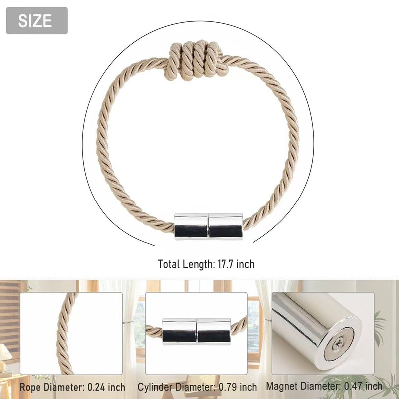 - 1. Premium Jute Construction: Expertly crafted from durable, light coffee-coloured jute, these 45cm magnetic curtain tie backs blend natural texture with sophisticated design. The double-reinforced magnetic securers deliver strong, rust-resistant hold for curtains up to 3kg, maintaining pristine walls while ensuring slip-free positioning across seasons.