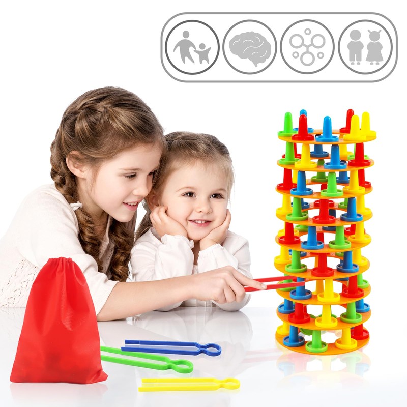 The Balancing Tower Stacking Game is an exciting, turn-based board game for children that promotes dexterity and strategic thinking.