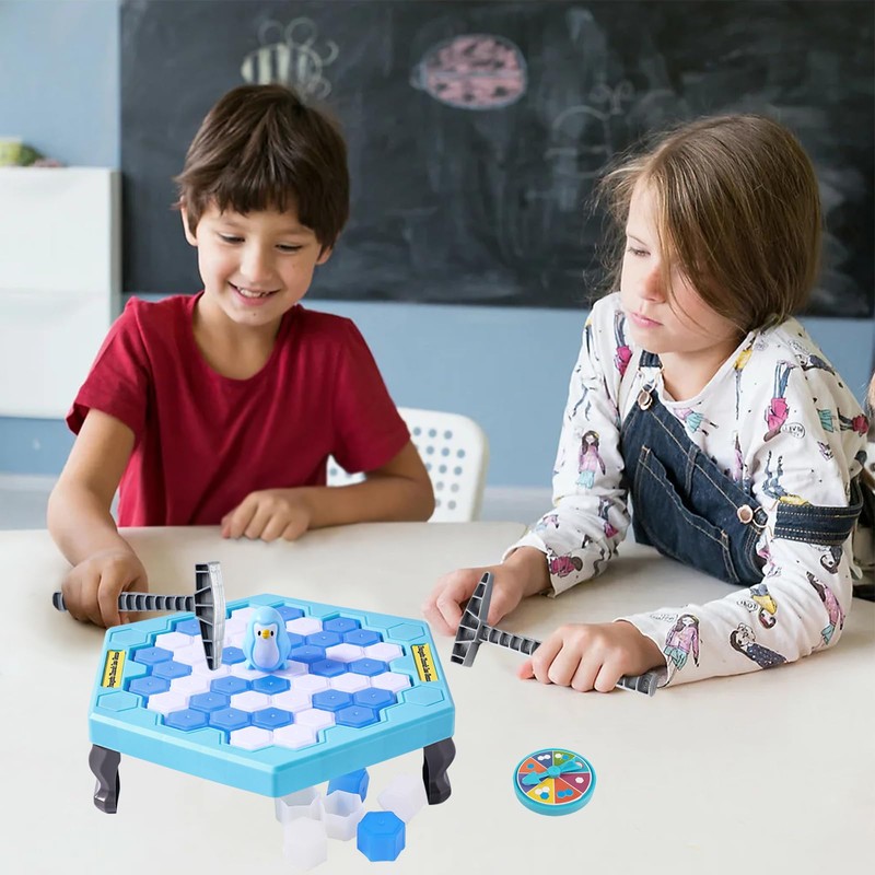 - Save the penguin board game: with this exciting game, 2-4 players from 3 years can have lots of fun. Action board games for kids includes everything you need for a fun game round: 1 ice tray, 4 corners, 2 hammers, 1 cute penguin, 1 turntable, 18 blue ice blocks and 19 white ice blocks. Simply twist the turntable and alternately tap the ice blocks to see who makes the penguin fall!