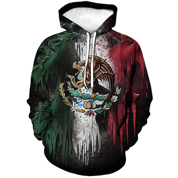 • [Features]:Unisex Mexico Flag Print Hoodie Mexican Eagle Graphic Sweatshirt Pullover with Pocket/ Fashion Mexico casual pullover Hoodies/ All Over Print/ Long Sleeves/ Front Pocket.