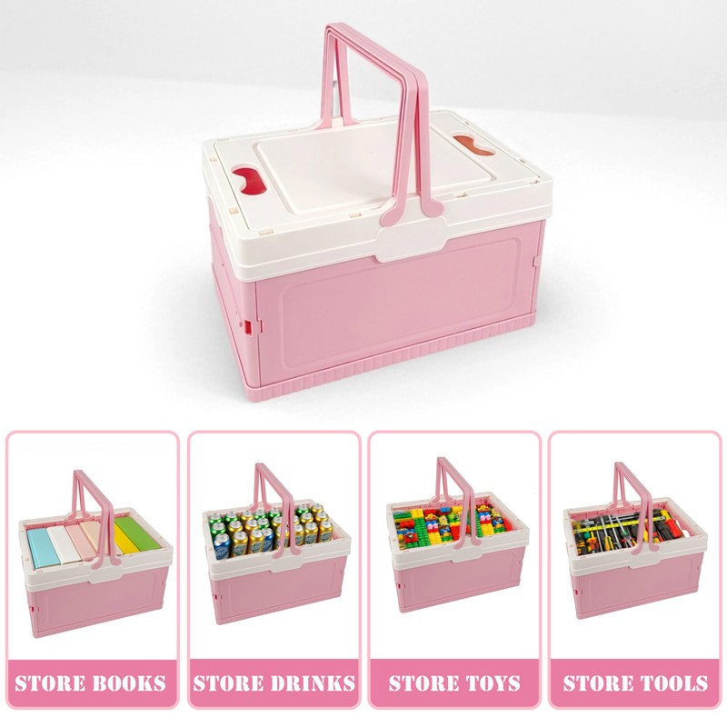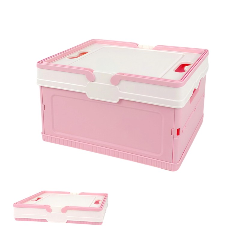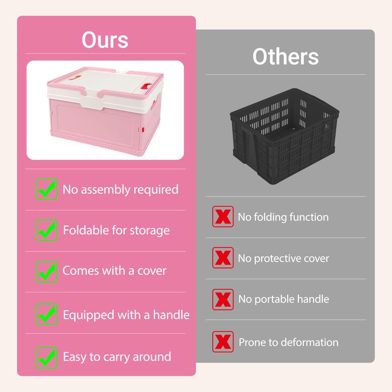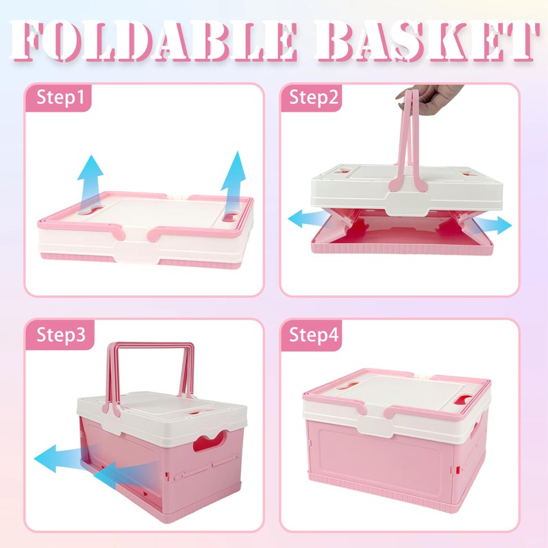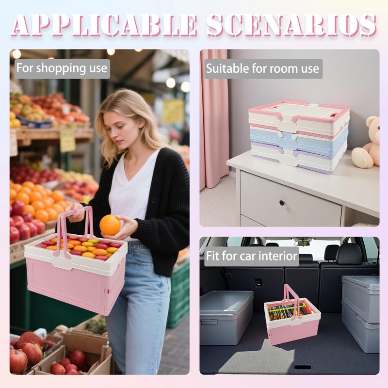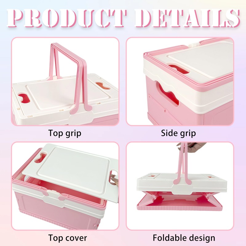 - VERSATILE ORGANIZATION: This foldable plastic basket with lid works as desktop organizer, bathroom bin, kitchen container, or office storage.
