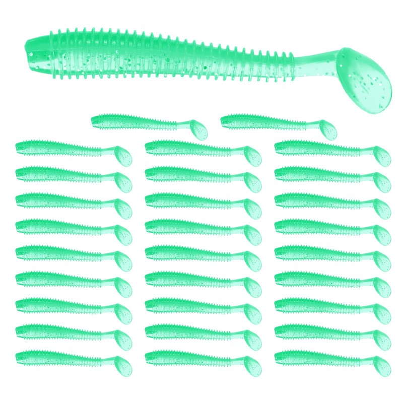 TIXIPEM 2.17" T-Tail Soft Fishing Lures [30-Pack] - Paddle Tail Swim Bait for Bass Trout in Saltwater & Freshwater - Rigged with 4 & 6 Hooks - Green & Durable ABS Plastic