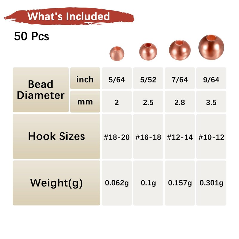 - PACKAGE CONTAINS:The size of the fly head ball is 5/52 inch/ 2.5mm, and the single weight is 0.1g, suitable for #16-18 size hooks. The package contains 50 pcs tungsten beads