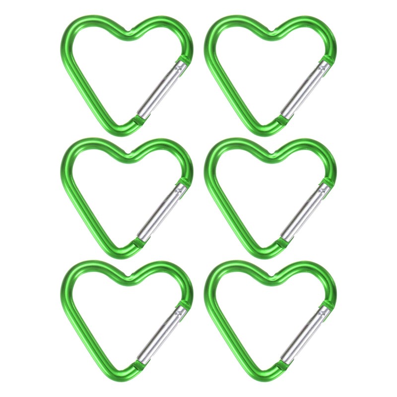TIXIPEM Heart Shaped Snap Clip [6 Pack] - Durable Keychain Clip Spring Snap Hook Use for Backpacks, Outdoor Traveling Walking & Camping Hiking - [Green/Aluminum Alloy]