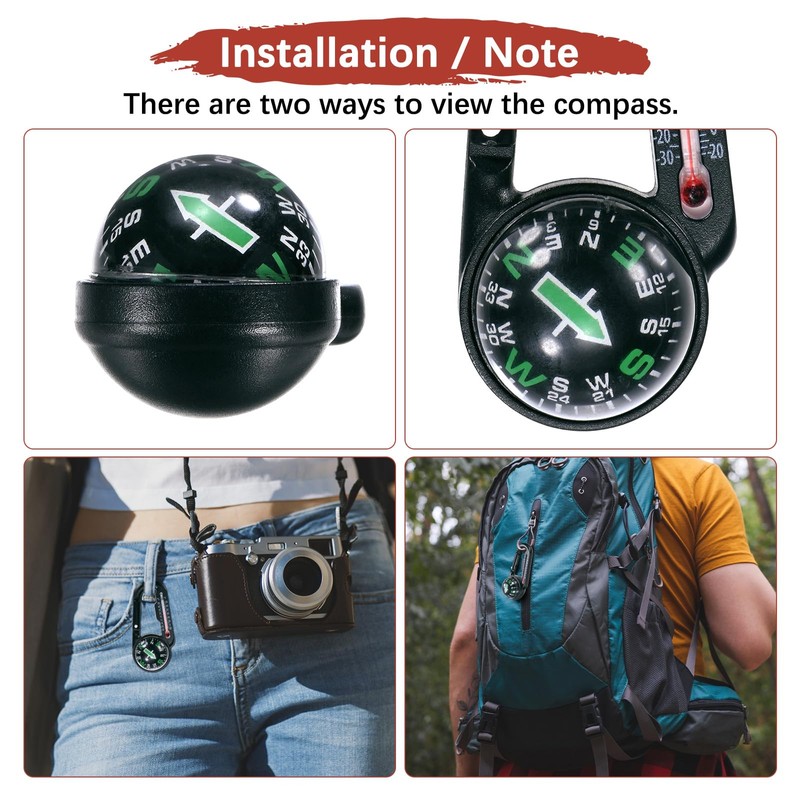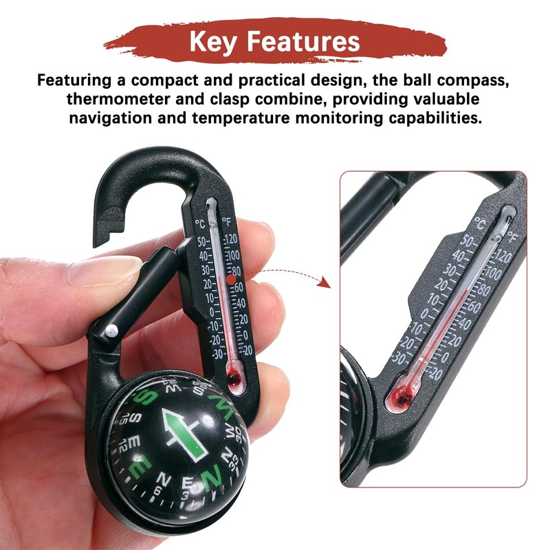 - GREAT CHOICE: Featuring a compact and practical design, the ball compass, thermometer and clasp combine to ensure seamless integration into outdoor gear, providing valuable navigation and temperature monitoring capabilities