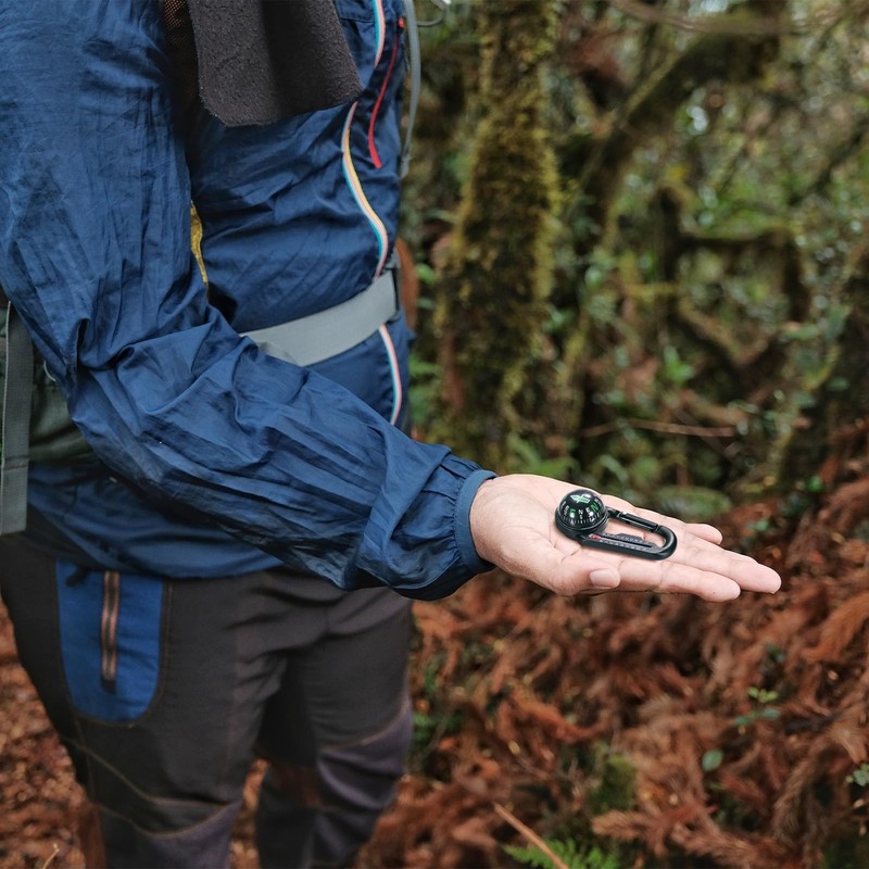 Featuring a compact and practical design, the ball compass, thermometer and clasp combine to ensure seamless integration into outdoor gear, providing valuable navigation and temperature monitoring capabilities.
