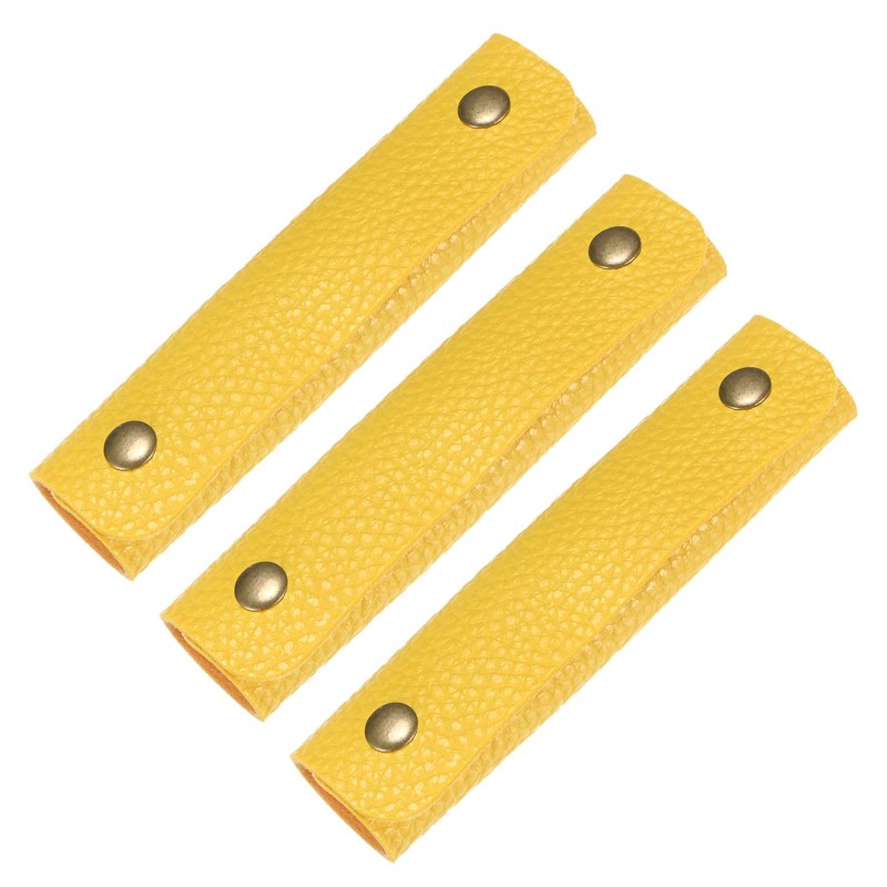 TIXIPEM Leather Handle Wrap [3PCS] - Handbag Handle Wrap Cover with 2 Metal Clasps Use for Suitcases & Bags & Shopping Totes & Wallets - [Yellow-5IN/12CM] Soft Purse Strap Pad