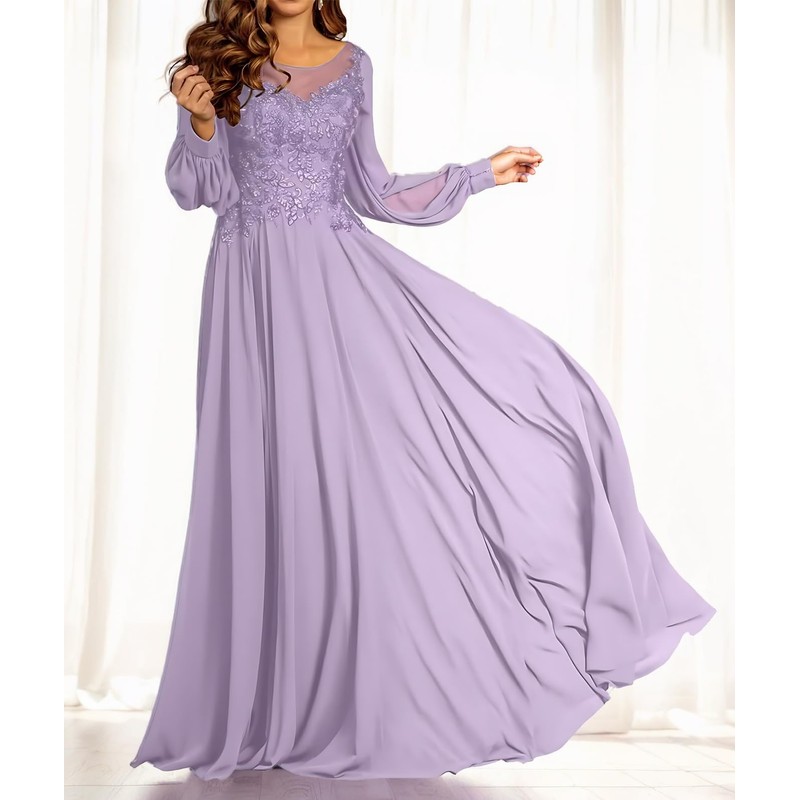 - [Excellent Fabrics]:This Elegant Round Neck Long Sleeve Floor Length Mother of the Bride Dress for Women is made from the high quality Chiffon,no harm to the skin,very soft and comfortable,skin friendly and breathable,Built In Bra.