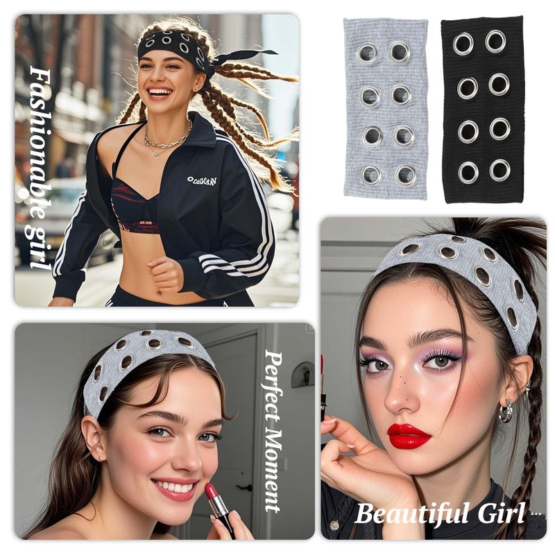 - Metal Grommets and Cloth Material: The headband is made from high-quality cloth and adorned with metal grommets, adding a cool and fashionable touch to any outfit.