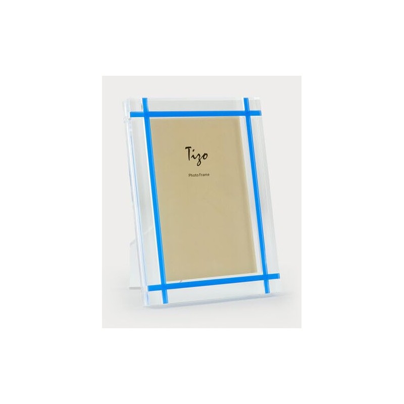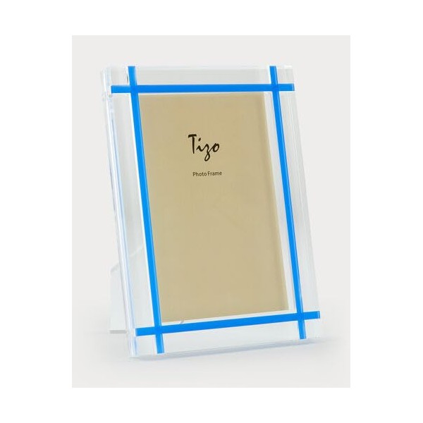 Tizo 4" X 6" Acrylic Crystal Clear Photo Frame, Blue INLAY Design