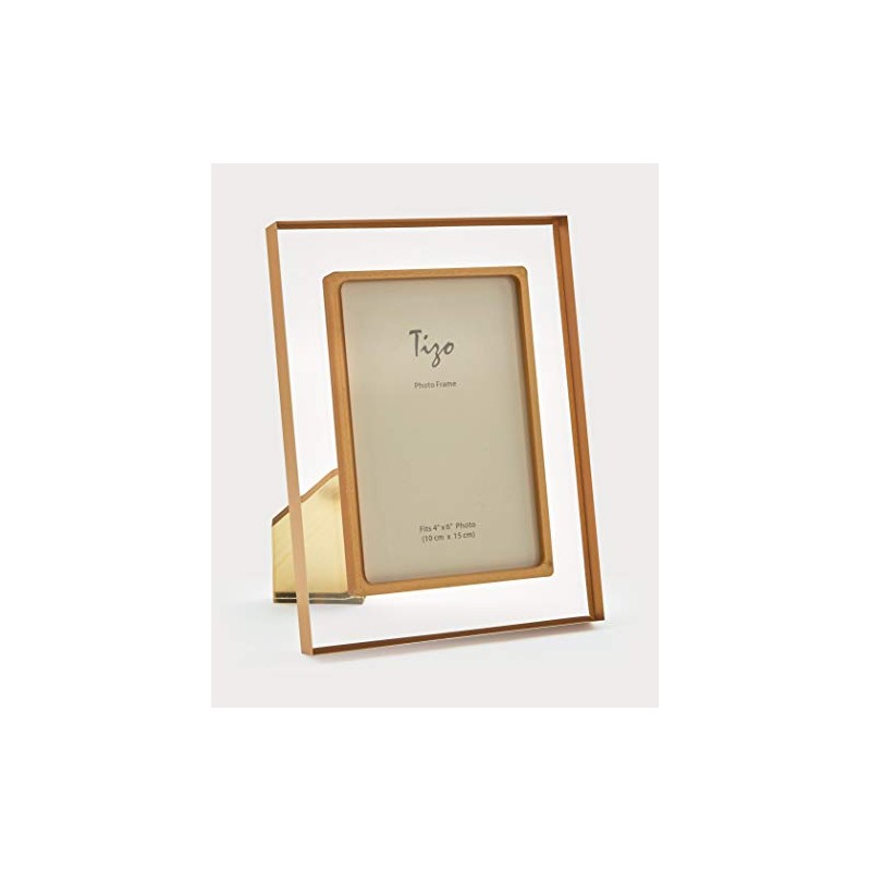 Tizo 4" X 6 Lucite Crystal Clear Photo Frame, Gold Backing