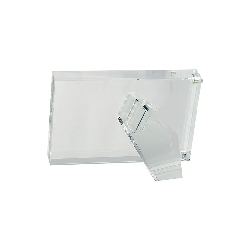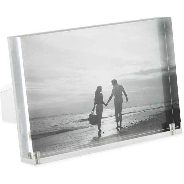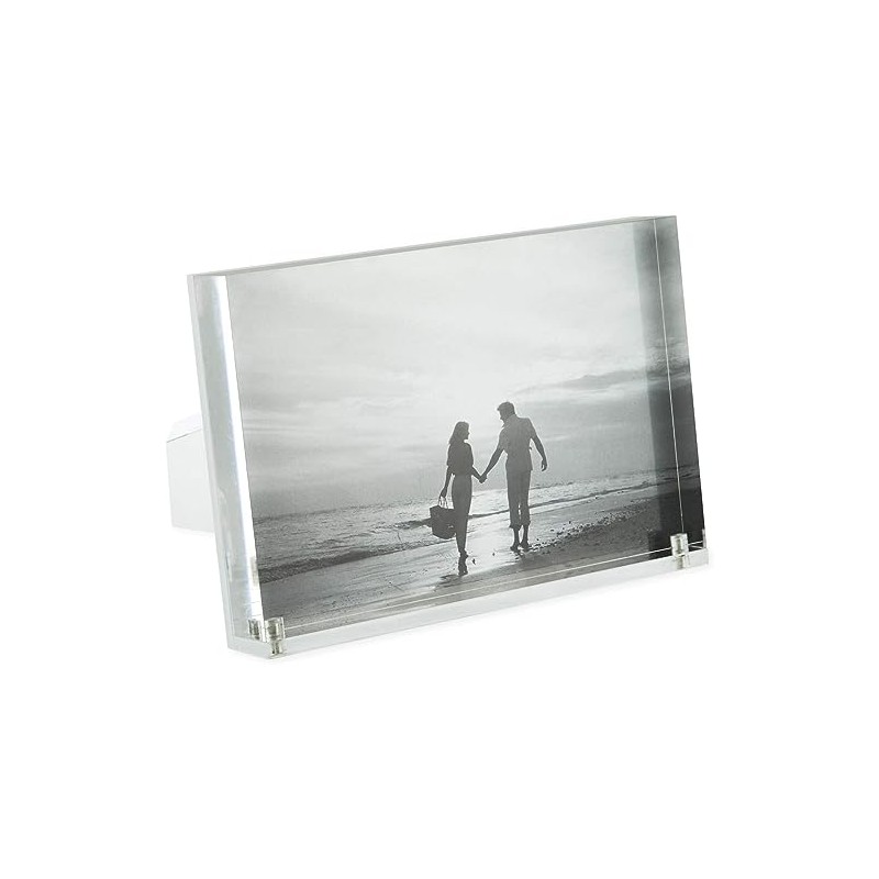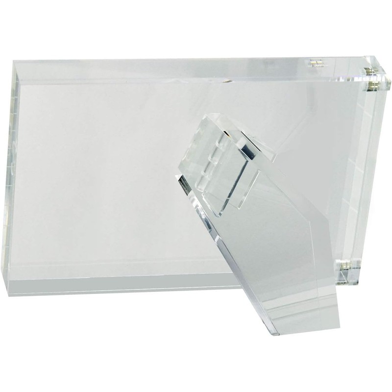 Elegant Photo Frame – Showcase your family portraits, cherished memories, and favorite art pieces in this modern high-quality frame for 6” x 4” photos; Featuring clear and durable 1” thick lucite with specially-designed clear lucite easel back; Stands horizontally