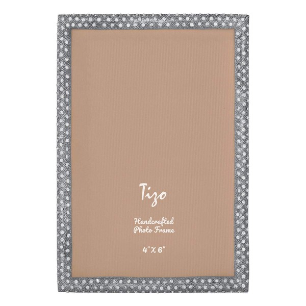 TIZO Design Jeweled Picture Frame, Metal Base with Genuine Crystal Accents, (4x6, Silver)