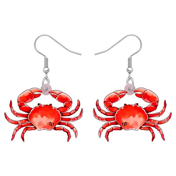 TIZURO Acrylic Cute Sea Crab Earrings Hawaiian Fun Summer Beach Ocean Animals Novelty Dangle Jewellry For Women Party Gifts (Red)