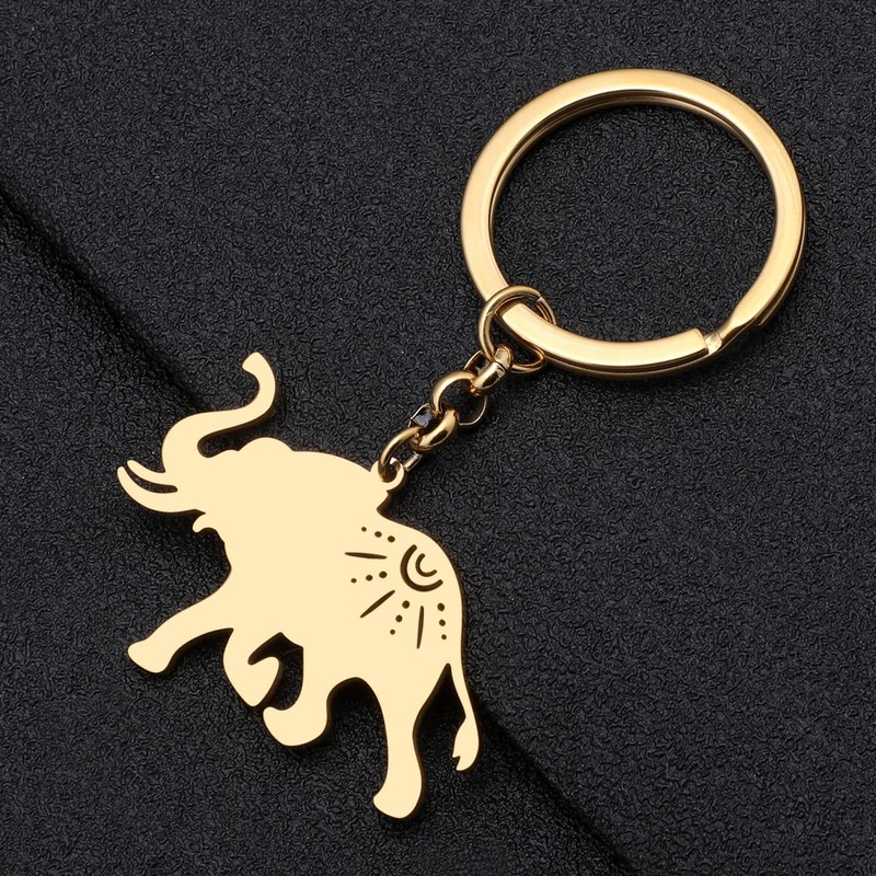 TIZURO Stainless Steel 18K Gold Plated Elephant Key Chains Wild Animals Wallet Keyring Jewelry For Women Car Keys Party Favors (18K Gold)