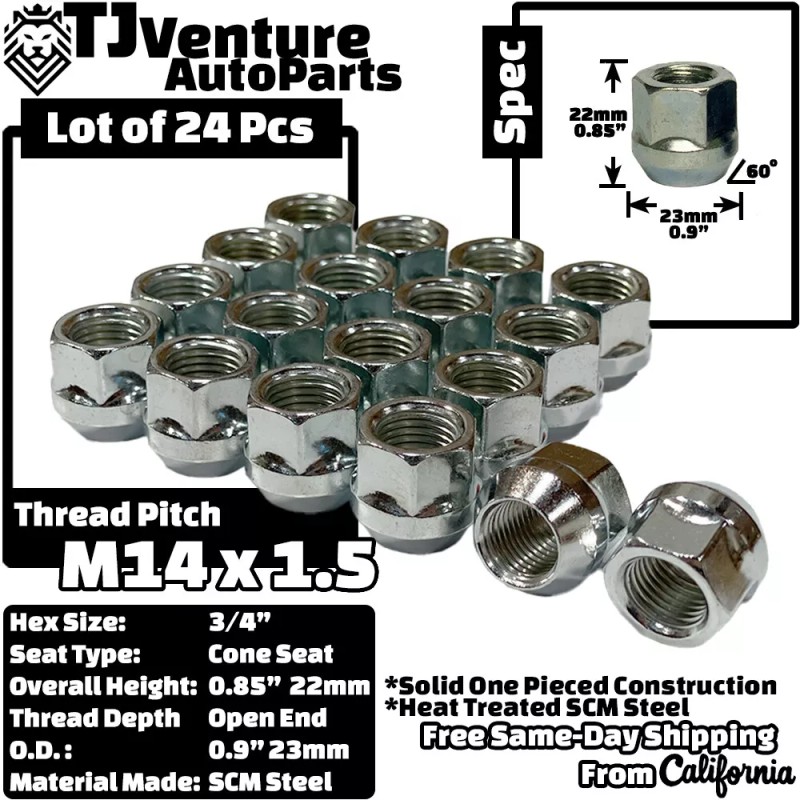 TJ 24Pc Chrome M14x1.5 Open End Lug Nut 3/4" Hex Fit Ford F150 Expedition Navigator