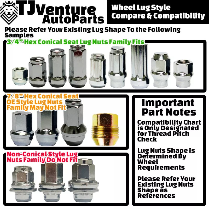 - Lug Nuts Overall Diameter: 0.9"(23mm)