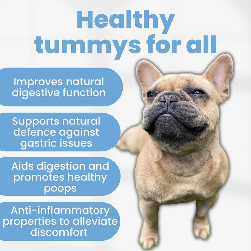 - ✅ SOOTHES & SETTLES STOMACH DISCOMFORT - Developed for TJ our French Bulldog to reduce stomach issues such as loose stools, wind and itchy skin.