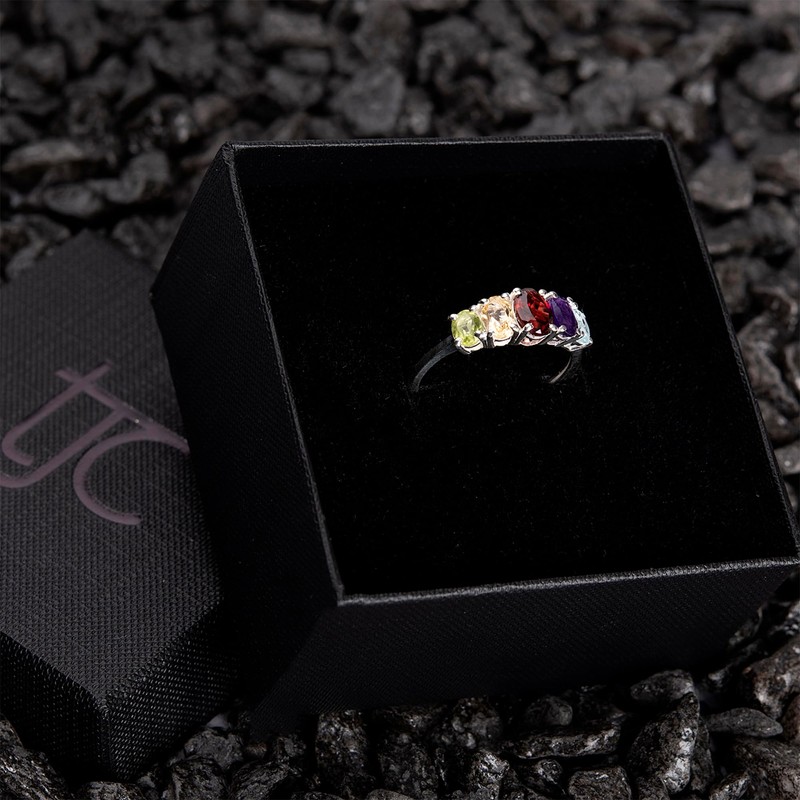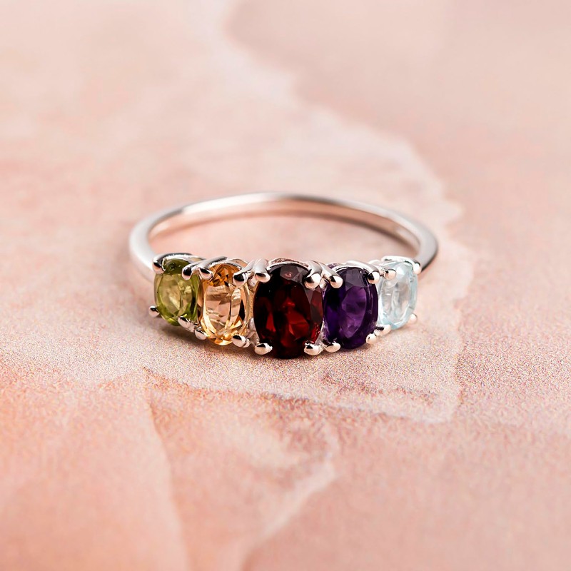 - Multi-Gemstone Ring: The vibrant amethyst stone serves as the centrepiece, complemented by other birthstone gemstones Sky Blue Topaz, Garnet, Peridot, and Citrine.