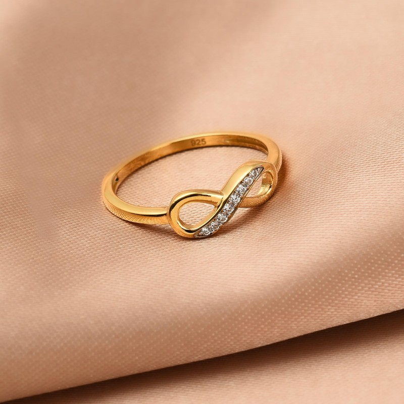 TJC Infinity Ring for Women In Gold Plated 925 Sterling Silver Cubic Zirconia CZ Forever Love Rhodium Plated for Ladies Size Q