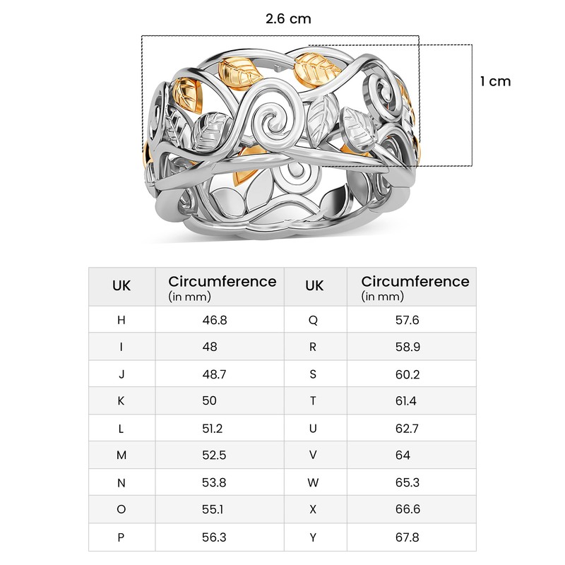 TJC Leaf Band Ring for Women in Yellow Gold and Platinum Plated 925 Sterling Silver Size P with High Gloss Metal Wt. 4 Grams