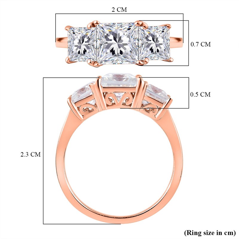 - Features: This featured stunning three stone ring is bejewelled with moissanite and designed with the best quality 18k rose gold plated 925 sterling silver.