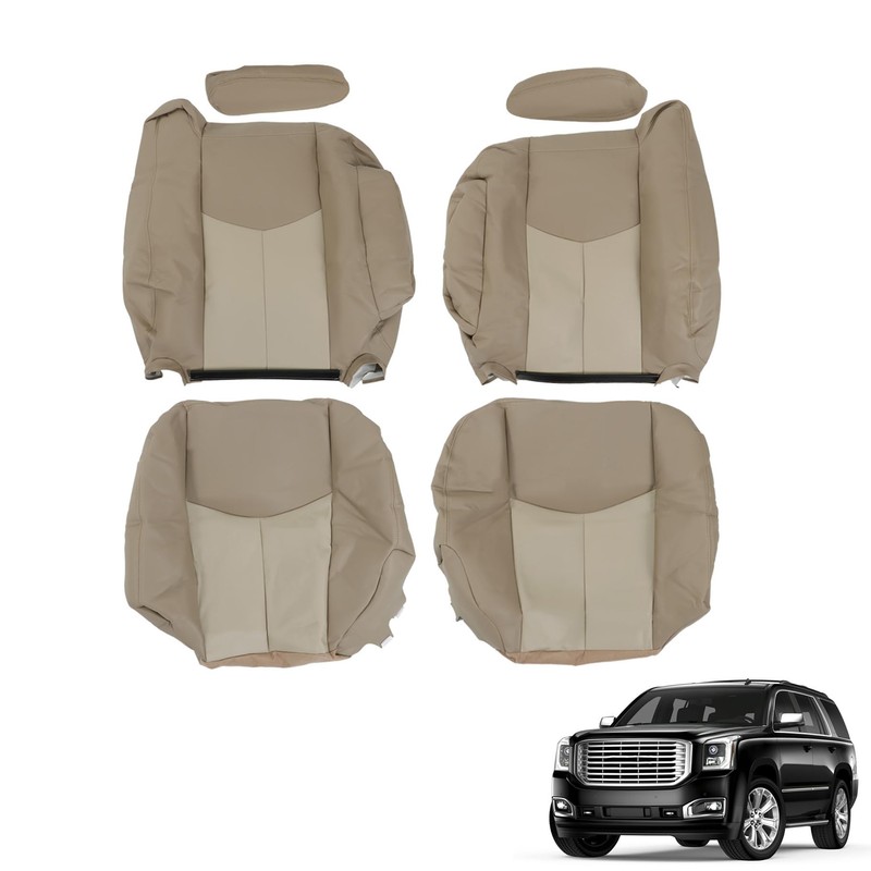 TJHSM Seat Cover Tan Driver Passenger Bottom Top Without headrest Hole Replacement for 2003 2004 2005 2006 Yukon Sierra Denali