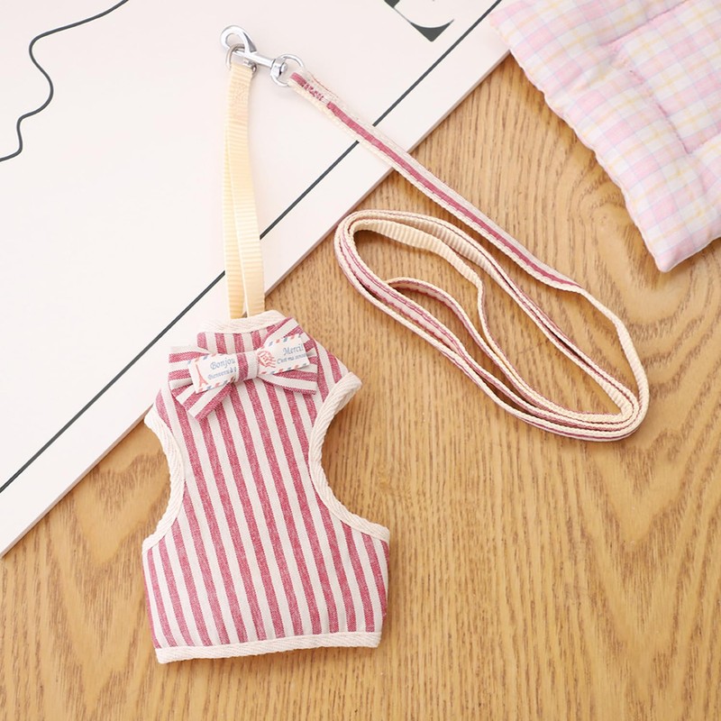 TJHypenete Rabbit Harness and Leash for Walking Escape Proof, Adjustable Soft Cat Vest Harness, Bunny Harness with Cute Bow, Comfortable Stylish Cotton Dog Harness Set for Guinea Pig Small Animals(M)