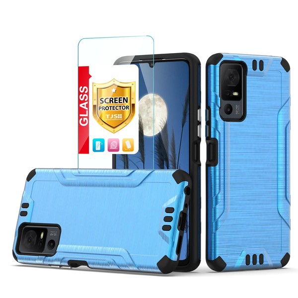 TJS Case for TCL 40 XL & T608DL, Jitterbug Smart4 Case with Tempered Glass Screen Protector, Magnetic Support, Hybrid Shockproof, Metallic Brush Finish (Blue)
