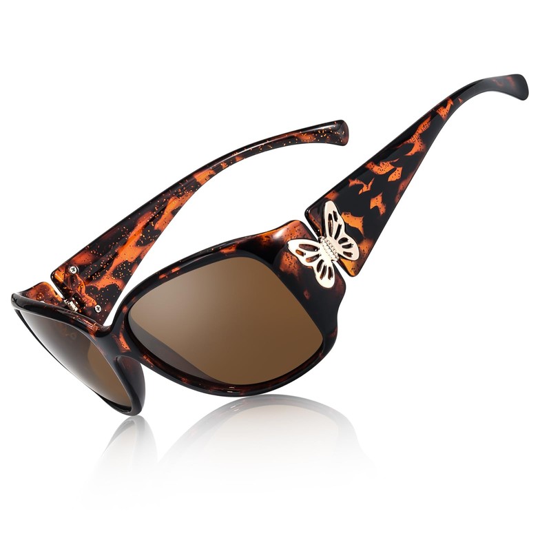 TJUTR Polarised Sunglasses for Womens Wrap Around Sun Glasses with UV400 Protection Trendy Butterfly Design