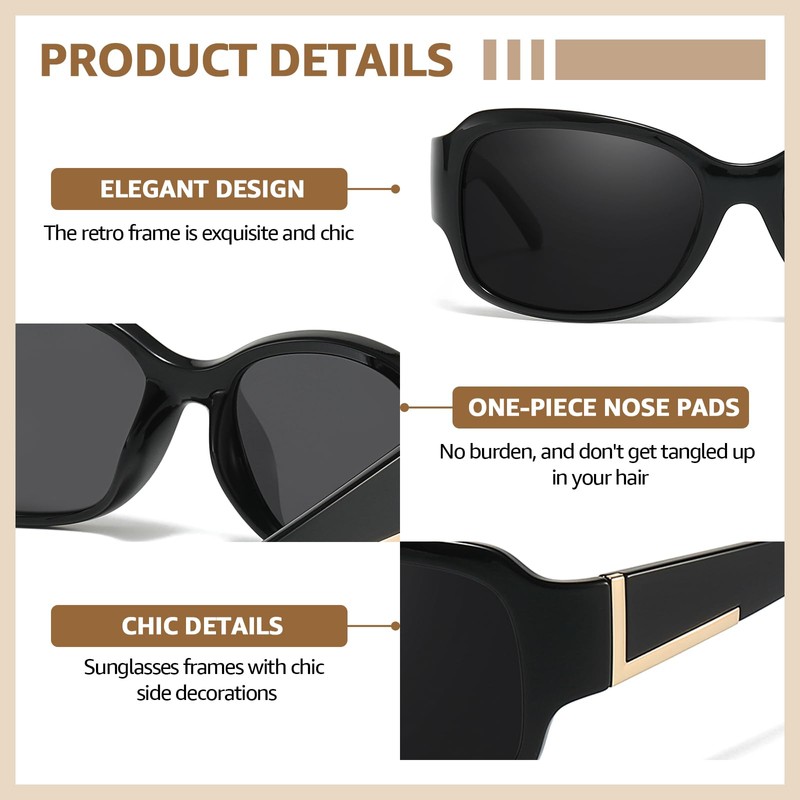 - TRENDY & STYLISH DESIGN: These stylish sunglasses feature premium and elegant metal accents on the temples, combining fashion with functionality. The timeless design adds a touch of sophistication to any outfit, making them a must-have for any occasion