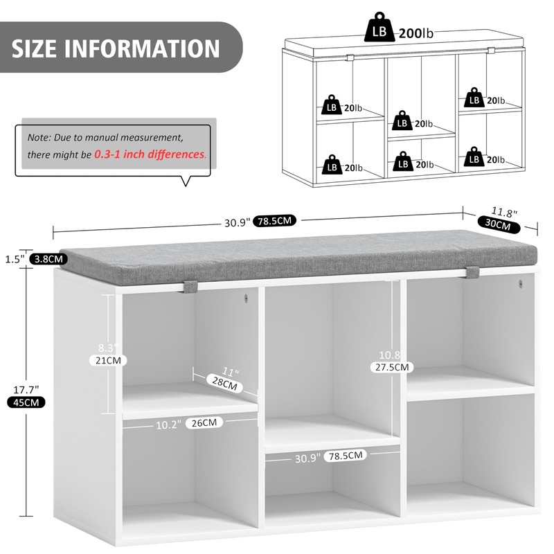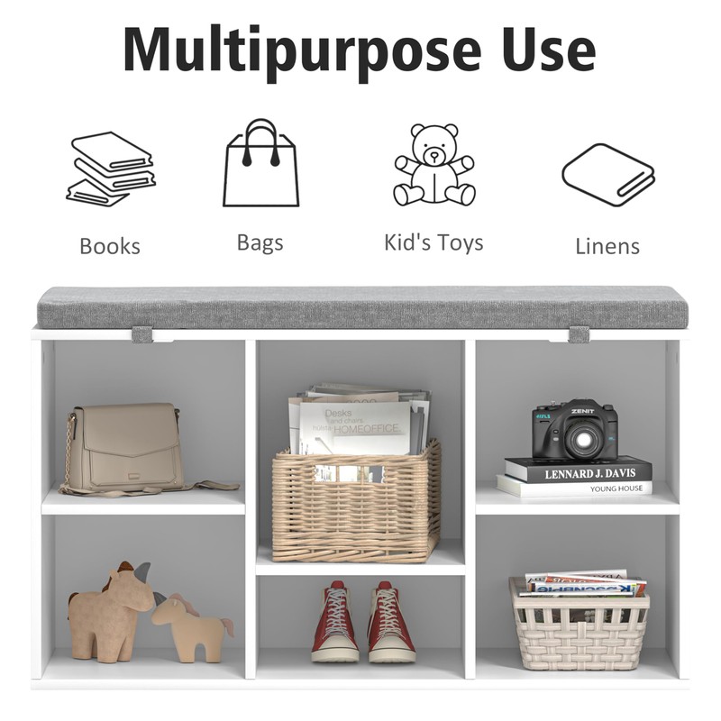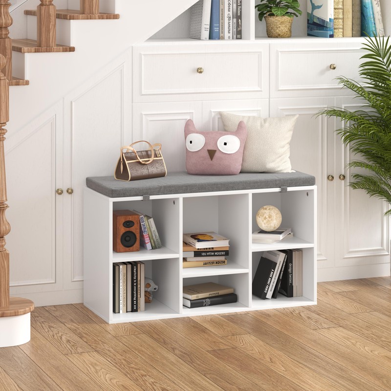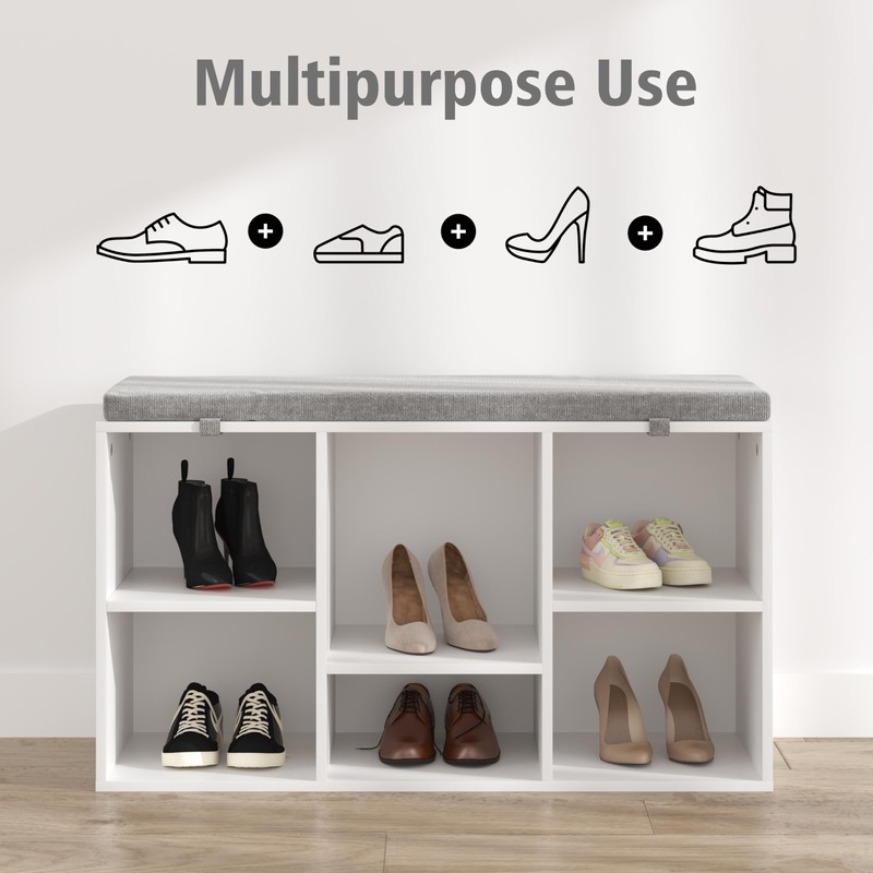 - Perfect Storage Space - Comes with 6 cubbies.The shoe storage bench can store shoes big and small—or even your favorite storage boxes. Everything is conveniently within reach before heading out.