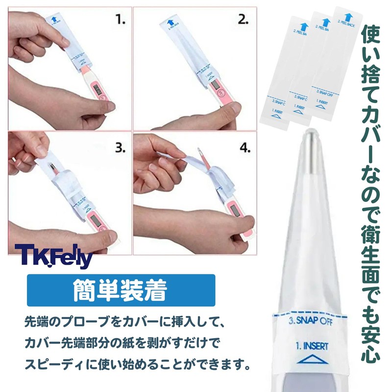 - Easy to install: Simply insert the probe at the tip of the cover and peel off the paper at the tip of the cover and start using it quickly. In addition, the cover is disposable so you can use it safely for the next user