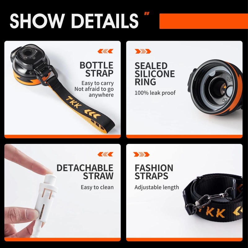 Convenient Design: The bottle comes with a strap that allows for easy carrying, and a straw for convenient drinking on the go.The strap ensures you can take it anywhere, whether it's to the gym, work, or on outdoor adventures. It also has a handle for easy pouring.