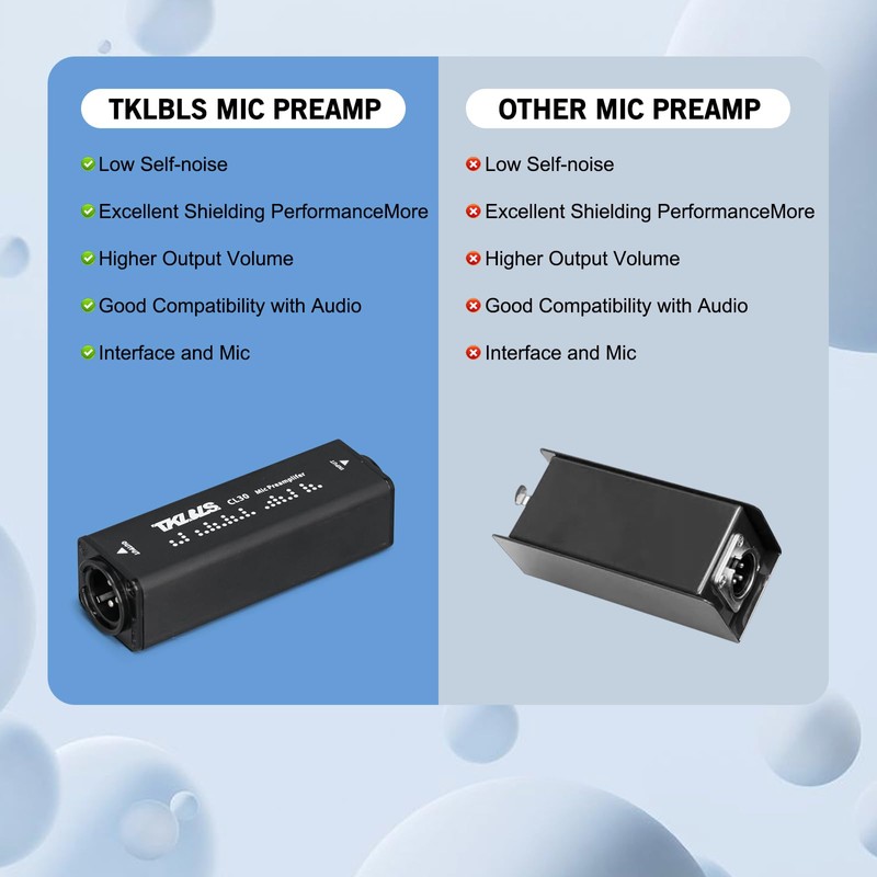 TKLBLS Microphone Booster Preamplifier, Single Channel Microphone Preamp Audio Booster, 48V Phantom Power Dynamic Mic Preamplifier for Studio Recording
