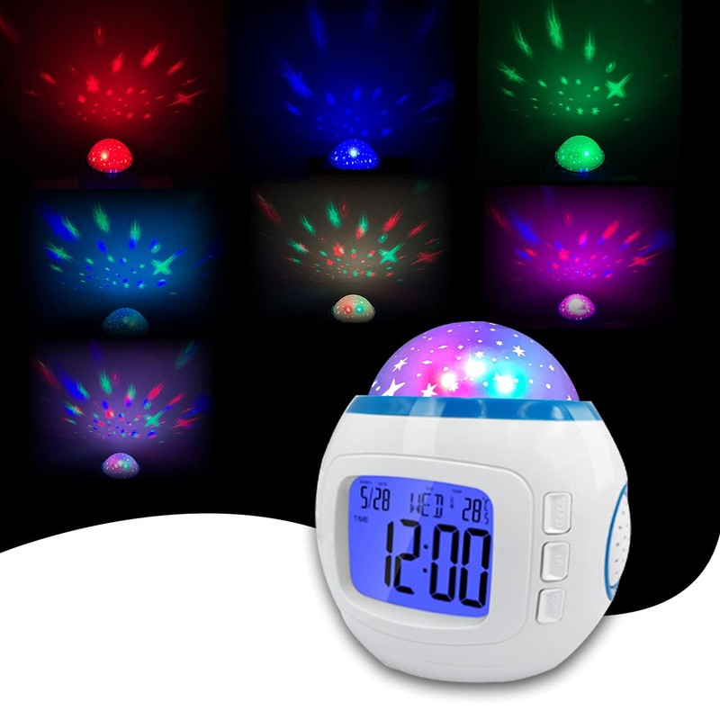 - 11 built-in ringtones: the night light clock with multiple rings can be adjusted according to your taste. It is good for sleeping children to teach children when it's time to go to bed and wake up. Dynamic projection of the colourful starry sky, accompanied by musical rhythms. It will be a lot of fun for your child.