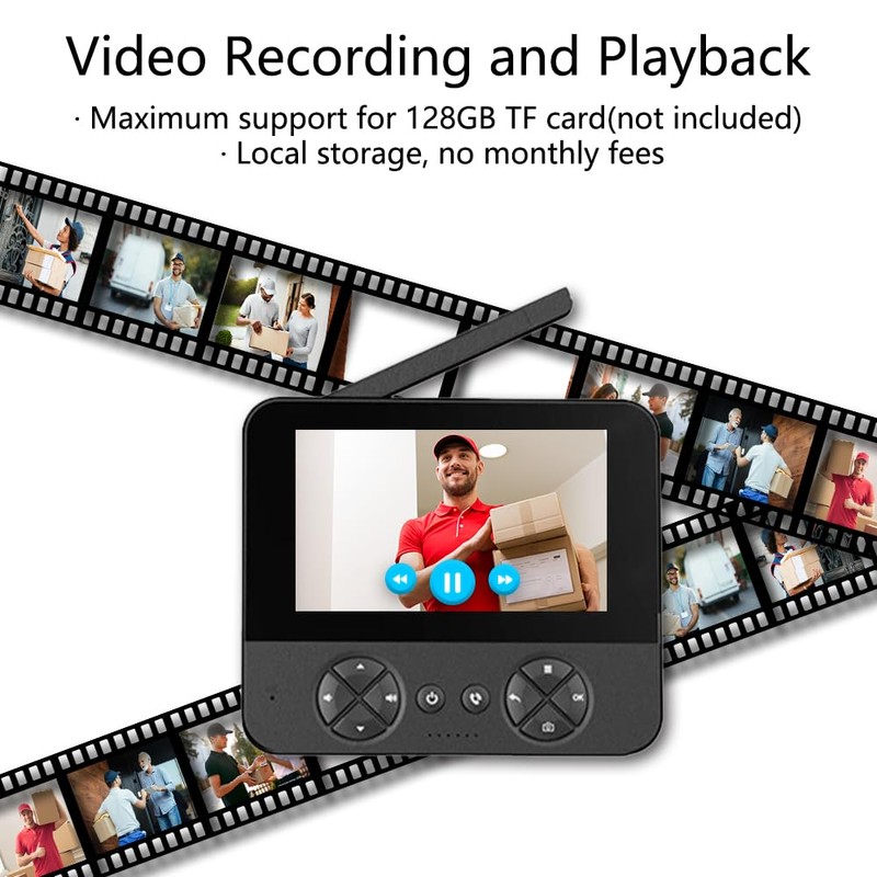 - [No WiFi, No App] – Unlike traditional doorbells, this video doorbell wireless works without a WiFi connection or an app. It comes with a 4.3-inch dedicated screen allowing instant viewing and two-way audio communication, and no monthly fees required, ensuring a stable and secure connection.