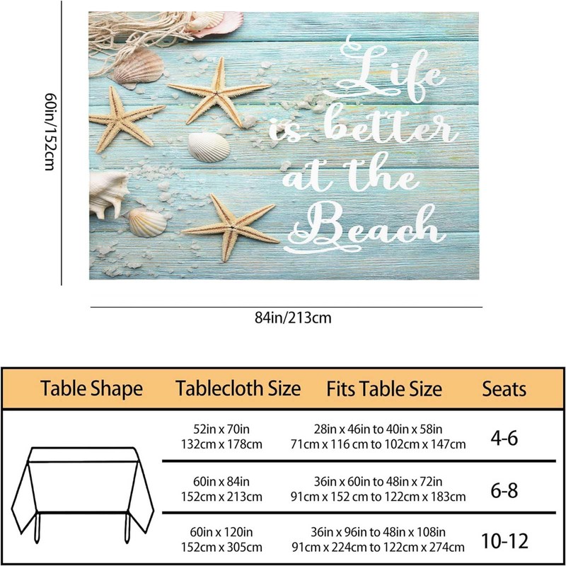 TKS MITLAN Tablecloth Life is Better is The Beach Table Cloth Rectangle Table 60 x 84 Inch Summer Sand Sea Shells Starfishes Kitchen Decorations for Home Dinner Party